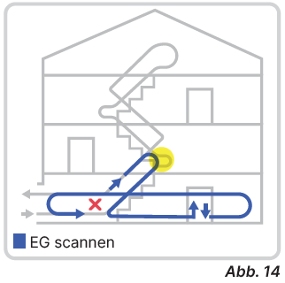 Den EG Scan immer außen 2-3 m vor dem Gebäude starten.