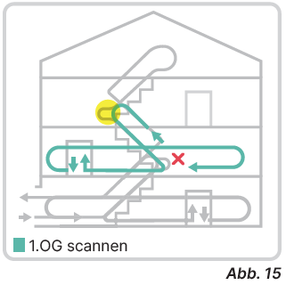 zueinander gewährleistet. Falls es mehrere Treppen pro Etage gibt, bitte unbedingt alle Treppen scannen.